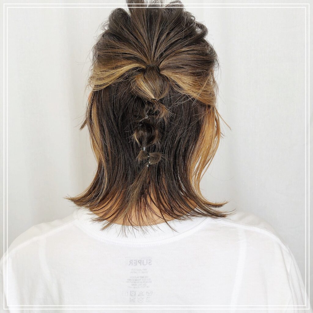 毛先は少なめなので、コンパクトなカワイイお団子ヘアになっています。