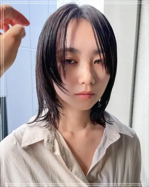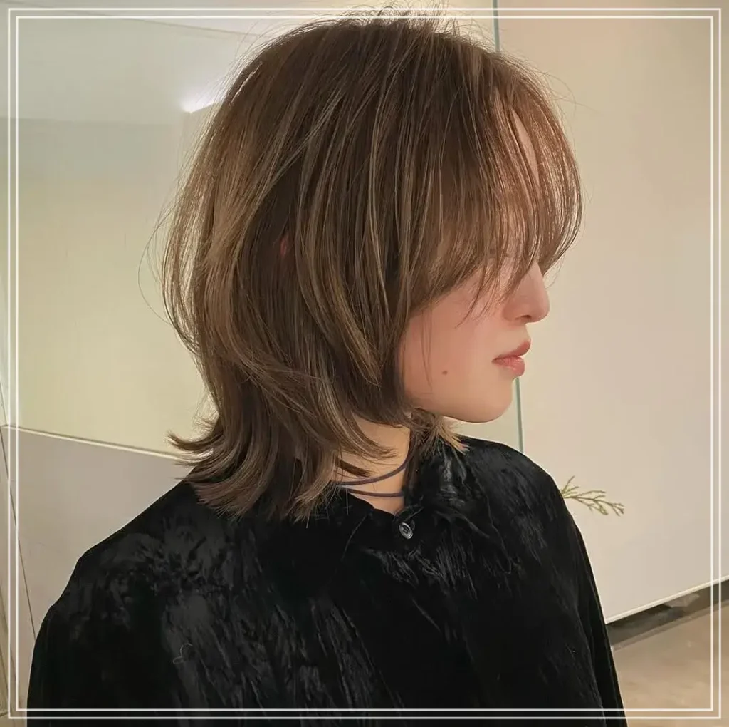 長めの前髪とフェイスレイヤーを活かすと、よりウルフ感が強い印象になりますね。