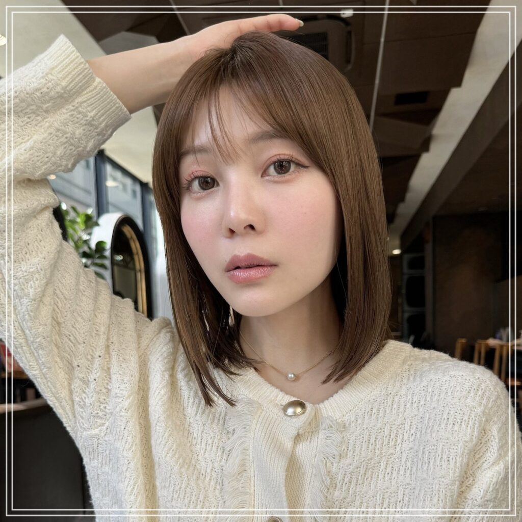 顔の余白をカバーし小顔効果も抜群で、透け感で優しさもあり、全体的に大人の美人感が出る仕上がりになっています。